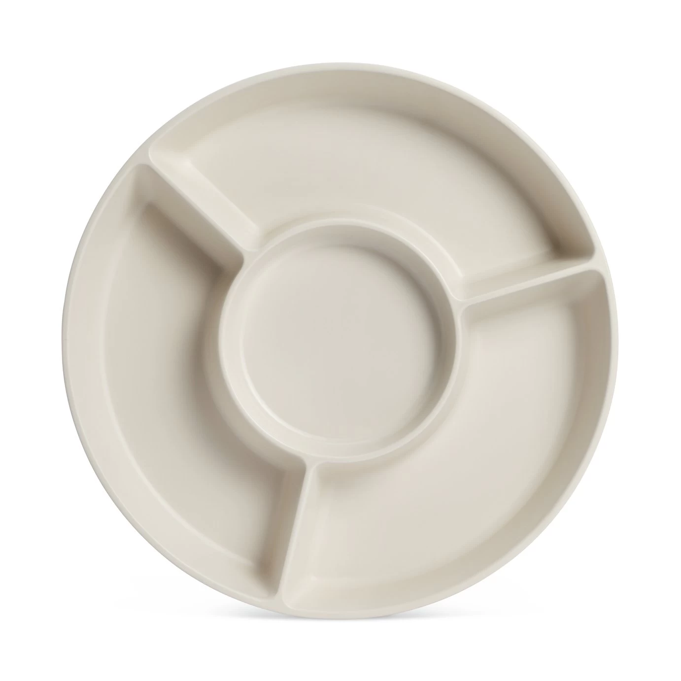Divided Server with 4 appetizer plates that are held in the center for easy storage and serving. Durable and Ideal for indoor or outdoor entertaining. Server can be used without plates for an additional dip placement option. BPA Free.