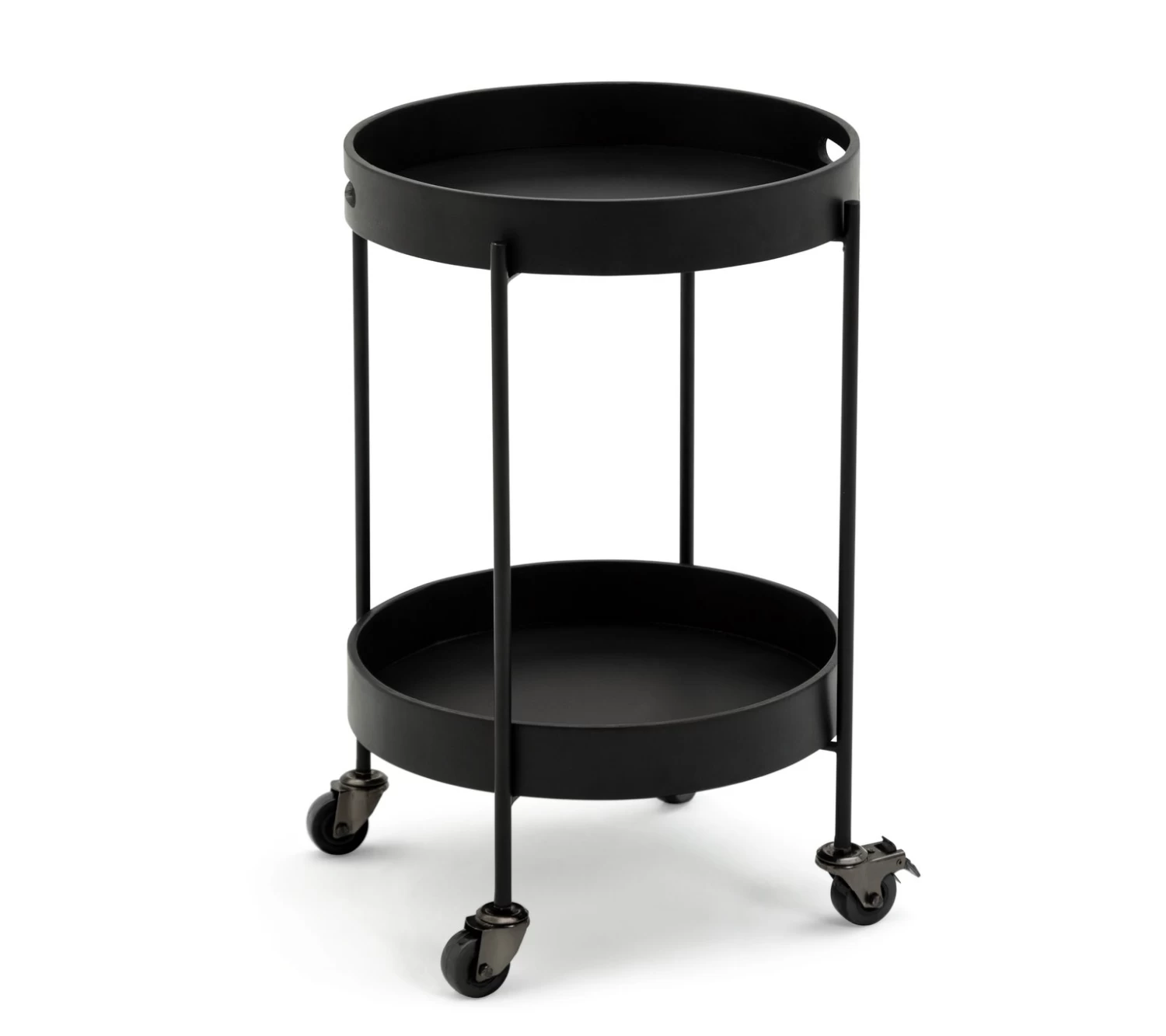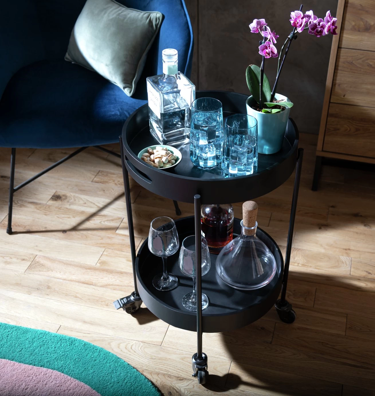 It's party time. Our Eris Drinks Trolley is the stylish storage solution for your favourite tipples. Cool and convenient, with a sleek black frame and two circular shelves. Give your guests the at-seat service experience! Pop bottles on the bottom and glasses on the top. Garden gatherings or winter warmers, Eris caters to it all.