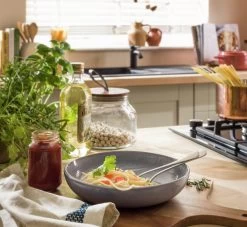 Our striking set of Evora pasta bowls feature a high shine reactive blue glaze which means no two pieces are the same. And there's something special about their relaxed yet refined organic shape. This pretty pack of 4 stoneware bowls are ready to serve up your favourite hearty feasts. Microwave friendly too, so you can warm up meals and take them straight to the table. Then pop them in the dishwasher when you're done. Love this organic, one-of-a-kind look? Match with more in our Evora collection.
