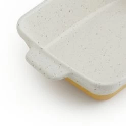 Our stunning stoneware roaster really delivers. Straight from the oven to your table. Features a beautifully chic speckled design with a vibrant yellow base. A delightful way to serve up roast potatoes or cauliflower cheese. This dish is a gem for even baking and browning. Enjoy crispy crusts and juicy fillings every time. Need to reheat something. Just pop the dish in the microwave, then put it in the dishwasher when you're done. How did you manage without it?