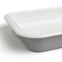 Sunday roasts or weekday potlucks. Our oven tray roasting set makes mealtimes simple and stylish. Enamel-covered bakeware in two useful sizes, its easy to prepare healthy dishes, pop in the oven and serve directly on the table. The white bakeware goes with any dinner service. Hard-wearing, easy to clean and oven safe at very high temperatures, you'll glad you invested in these trays. Time to try out that Hotpot recipe.