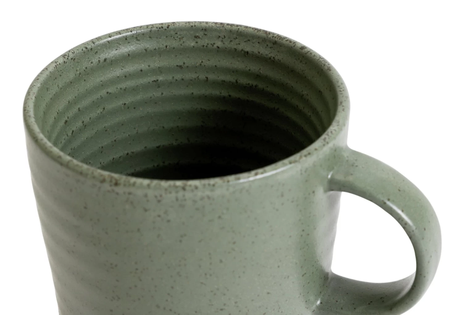 4 soothing cuppas coming right up. Our set of 4 sage mugs have a tactile yet subtle ripple texture. The contrasting dipped effect at the base adds to the calm modern design. In speckled stoneware, they're a stylish choice. And they're robust enough to stay looking good for years. That's a great start.