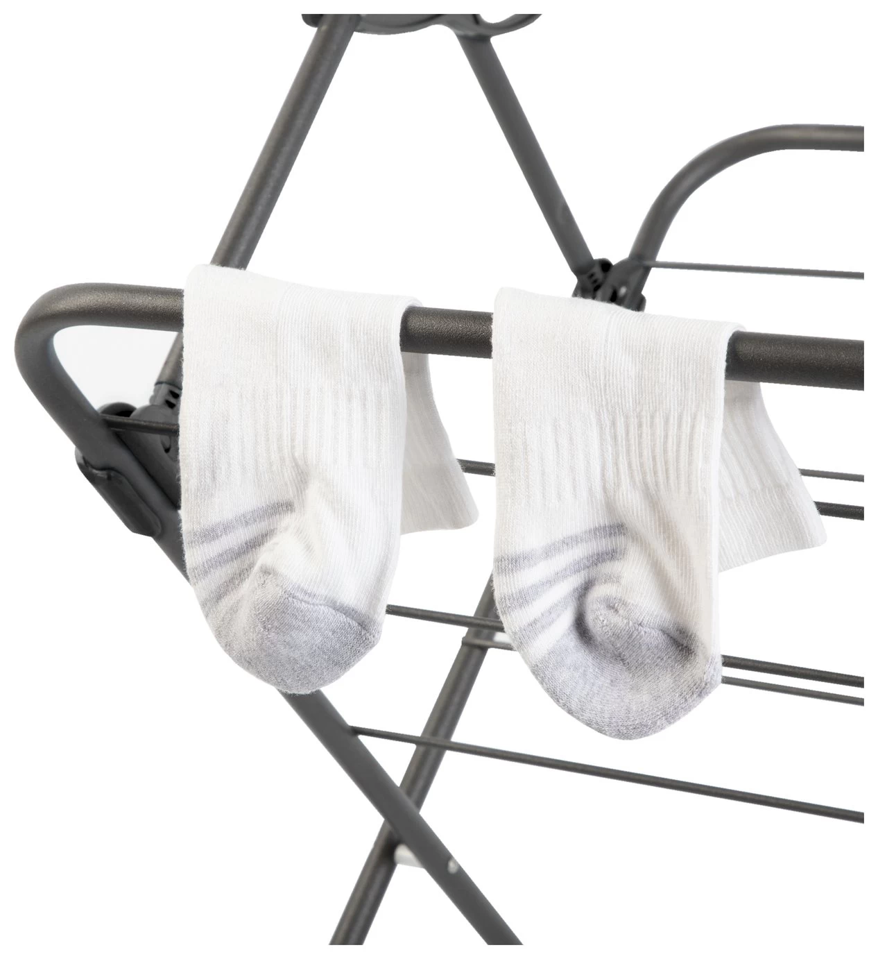With textured non-slip rungs, the revolutionary Sure Grip technology holds garments firmly in place to prevent items sliding off even when the airer is moved or when drying outdoors in the breeze. Thanks to its rust resistant properties, the non-slip technology provides weatherproof protection, making it perfect for indoor and outdoor drying. The airer opens in seconds and features 21 metres of hanging space, comprising 15m of rungs plus 4 flip out corners that can hold 12 extra-long hanging items. Whilst not in use, it folds away neatly.
