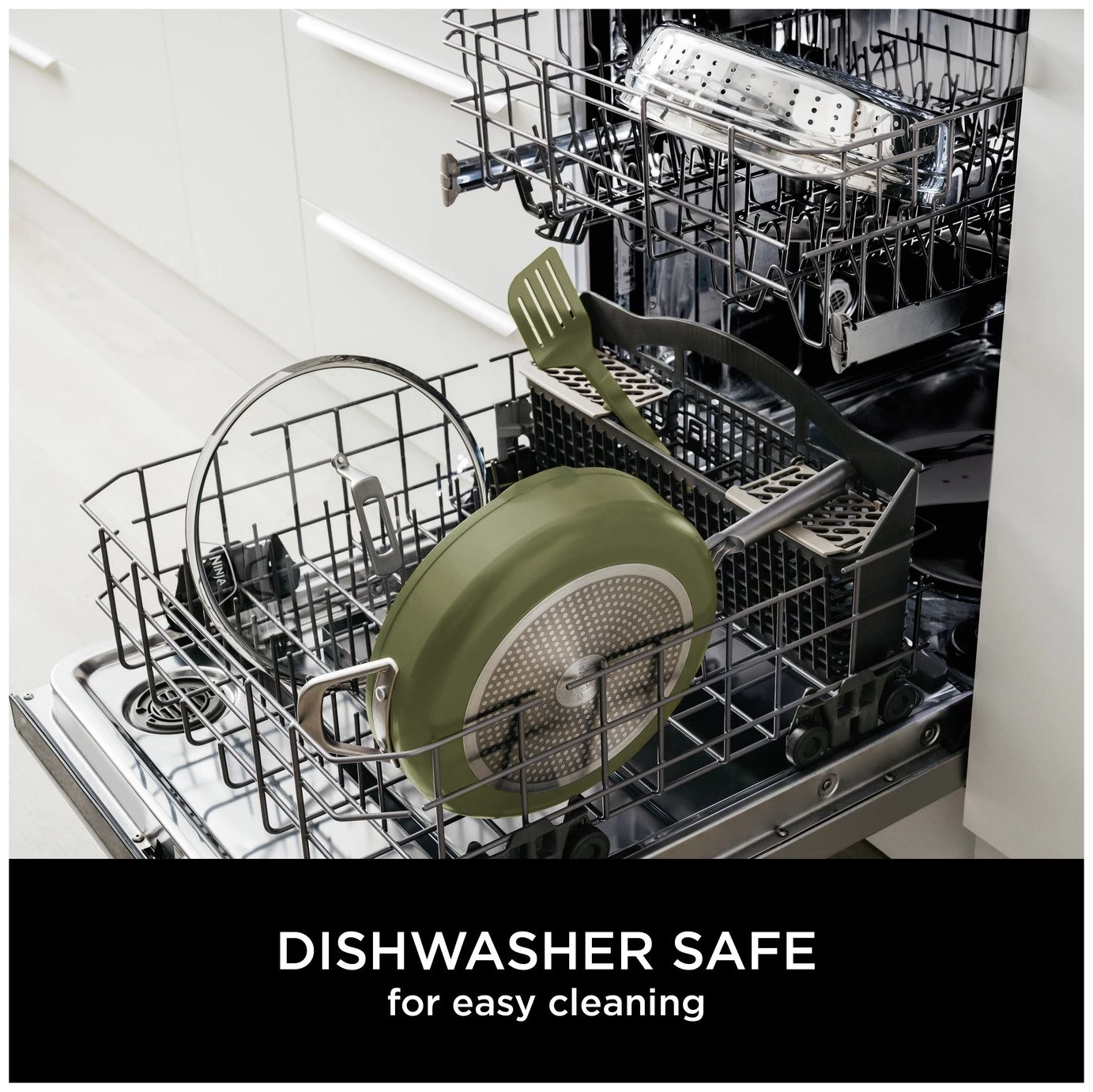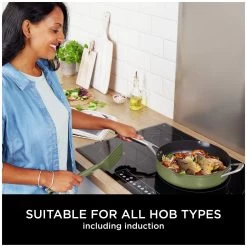 Zero chip, flake or peel – Ninja ZEROSTICK is dishwasher safe, scratch resistant, durable and long-lasting. Crafted from forged aluminium for even cooking and excellent searing, with cast stainless steel handles. Cook using little to no oil. PFOA, lead and cadmium free.