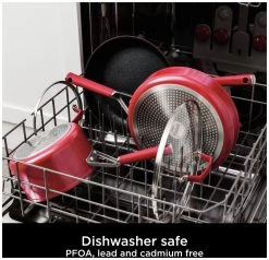 This Vivid Red cookware adds a splash of colour to any kitchen and features cool-touch silicone handles for a comfortable grip that stays cool on the hob. Durable and long-lasting, Ninja ZEROSTICK Technology combines ultra high-heat plasma ceramic bonding with a unique non-stick coating, meaning every pan stays flake and peel free. Dishwasher safe, scratch resistant and metal utensil safe. Oven safe up to 200C and suitable for all hob types, including induction, you can start your creation on the hob and finish in the oven.
