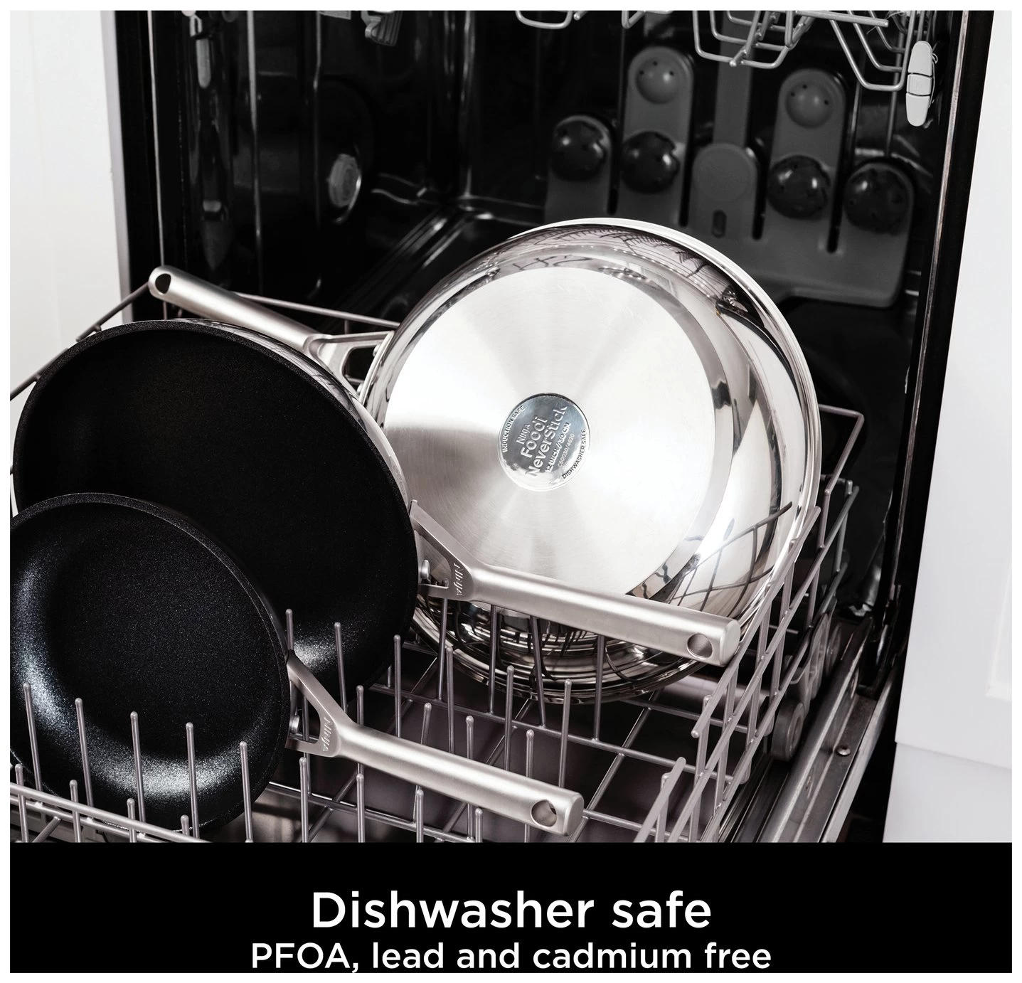 This sleek saucepan set is expertly crafted from polished stainless steel with an aluminium core for even heat distribution and excellent high-heat searing. Durable and long-lasting, Ninja ZEROSTICK Technology combines ultra-high heat plasma ceramic bonding with a unique non-stick coating, meaning every pan stays flake and peel free. Dishwasher safe, scratch resistant and metal utensil safe. Oven safe up to 260C and suitable for all hob types, including induction, you can start your creation on the hob and finish in the oven.
