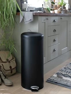 The simplehuman semi-round plastic pedal bin has a flat back for easy placement against the wall and out of the way. Its large capacity also makes it an ideal choice for busy areas around the home. It has a strong steel pedal that is designed to last, and our patented lid shox technology ensures a smooth, silent close every time. A slide lock helps keep rubbish in and pets and curious children out. simplehuman code P liners are designed to fit this bin perfectly, extra-thick plastic and double-seam construction prevent rips and tears.
