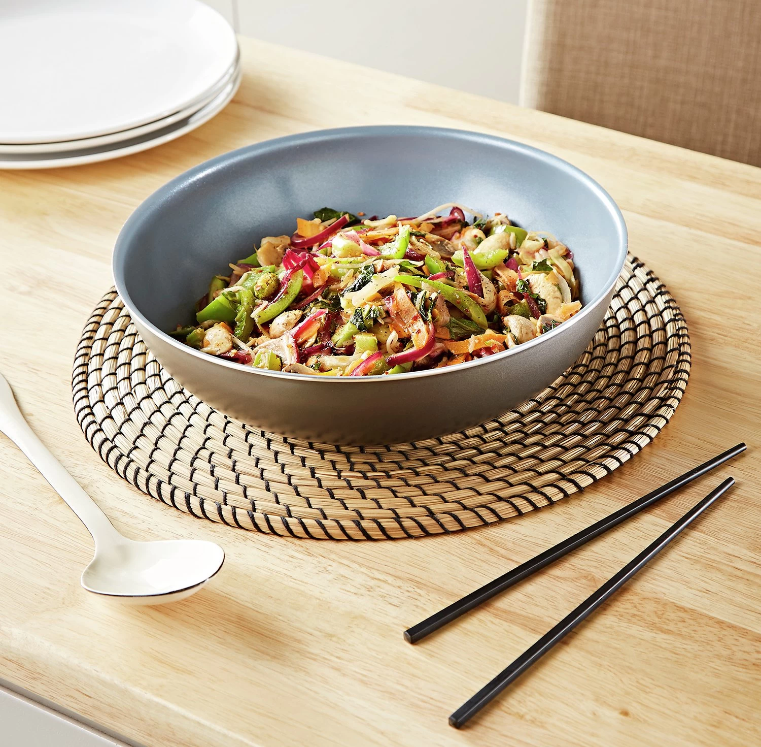 VERSATILE COOKWARE SET: With 16/20cm saucepans, 22/28cm fry pans, 28cm wok, 24cm saute pan, 3 glass lids, 2 silicone lids and 2 handles.